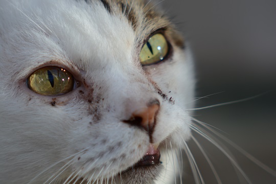 わたしはおんもには出ないのだが、友達はおります。え?いるわけねーだろ!って?失礼ですね、あなた。まあ、いいでしょう。わたしは無駄な争いは好みませんので。いいたいやつにはいわせておきます。わたしは根に持つタイプではありませんからね。 さて、土曜日、日曜日、年末年始や国民の祝日といえば、「とらじ」君と「きんたろう」君が朝からやってきます。訳はまったくわかりましぇん。彼らには正当な理由があるのでしょうが、わたしには全くもって?でや。思い当たることといえばなきにしも非ずですが。 「とらじ」君はトラ白でしっぽが長い。わたしのしっぽは中くらいの長さです。真ん中あたりで少し曲がっています。「とらじ」君はほぼまっすぐで、“ほぼ”といったのはよく見ればしっぽの先が少し曲がって小さなお団子になっておりますから。「とらじ」君は色白です。分け目が整っていてトラ色がきれいな左右対称になっておりますね。わたしはといえば「ベレー帽かぶっているみたい」といわれております。わたしは実に美しい「ぶちねこ」ですので。おっと、余計なことをしゃべってしまいましたね。わたしの話は後にして、「とらじ」君、年はわたしよりかなり上でしょうね。わたしは「とらじ」君を「とらじぃ」と親しみを込めて呼んでいるだでや。最初に姿を見たのはここ1年くらいがや? うちの人間さんが内ドアを閉め忘れ、かつ玄関ドアを開けっぱなしにしていたところを、わたしが見逃すわけがなく、堂々と玄関から外へ出かけたあの日、わたしは「ぴー太郎」君のところでとらじぃと出くわしたでや。 不思議なこともあるだがや。わたしはその日に何があったのか憶えていない。全くもって記憶がない。気付いた時にはいつもの寝床のこたつの中にいただがや。やたらと空腹だったでや。わたしは人間語を理解するが、人間の話によれば、わたしは出奔し、3日も家に戻らなかったという。わたしがいつ戻ってもいいようにと小窓だけは開けてあったそうだがや。わたしはこの家にそんな小窓の出入り口があることなぞ知らない話だがや。わたしは小窓から家に戻り、用意してあったカリカリを平らげ、こたつの中ですやすや眠っていたんだと。 人間の酔っ払いも記憶がなくなるというが、とらじぃと出会ったあの日、何故か酔っ払ったんだと思うがや。絶対に取っ組み合いのけんかになったショックで記憶喪失になったわけではありましぇんから。けんかに負けたわけでは絶対にあ・り・ま・せ・んから。え?左後ろ足の爪?はがれていますよ。それがなにか わたしが記憶を失った日からとらじぃは、人間界の“休日”にはわたしの家にやって来ては勝手口から部屋の中を覗いていくだでや。どういう意味かしら。 そうこうしているうちにこの1か月余り、勝手口から中を覗くやつが、増えた。「きんたろう」君は灰色白のバイカラーで、たぶんとらじぃの身内だと思う。毛色は違うが左右対称の生え際と、目鼻立ちがそっくりだ。わたしは「きんたろう」君と1度戦って勝っている。嘘じゃない。本当のことだがや。 嫌だな。その疑り深い目。そりゃ、多少毛が舞いましたよ。え?失礼じゃないですか。全部白い毛だったって。やられたのはわたし?わたしは確かに白い毛が多いです。「きんたろう」君だって、おなかの方は白い毛が多いんですよ。わたしがやられたって証拠にはならんがや。皆しゃん状況証拠だけで判断してはだめだでや。 おわり